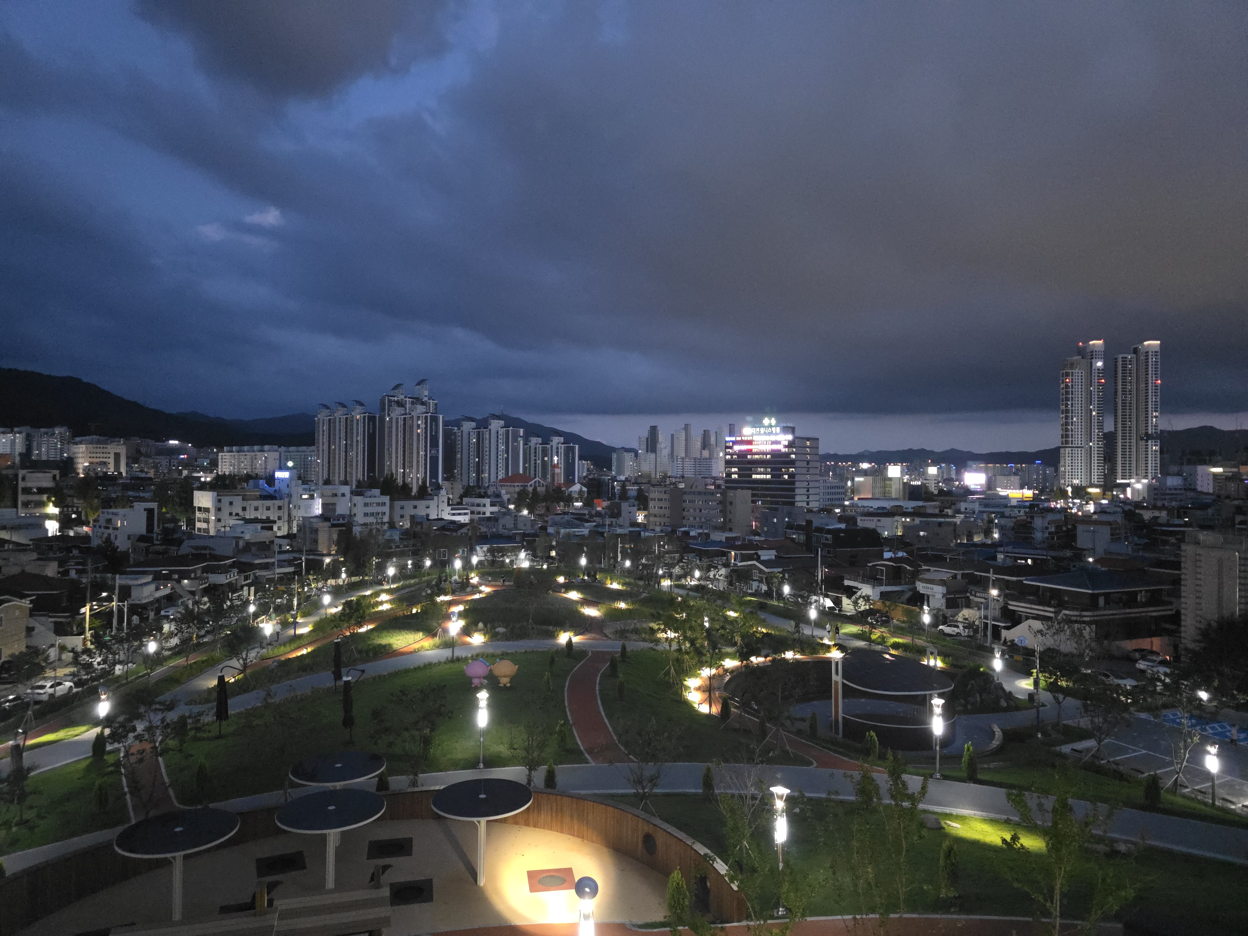 저녁에는 용전근린공원까지 가보았는데요. 산책하기 좋았습니다.